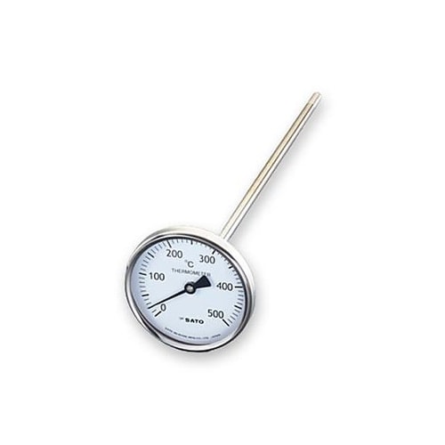 使用方法/感温部先端より110mm以上被測定物に挿入してください。注意/ケース及び透明板部分の耐熱が500℃あるという訳ではありません。バイメタルを利用した工業用温度計です。 |