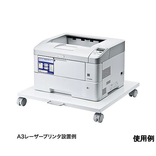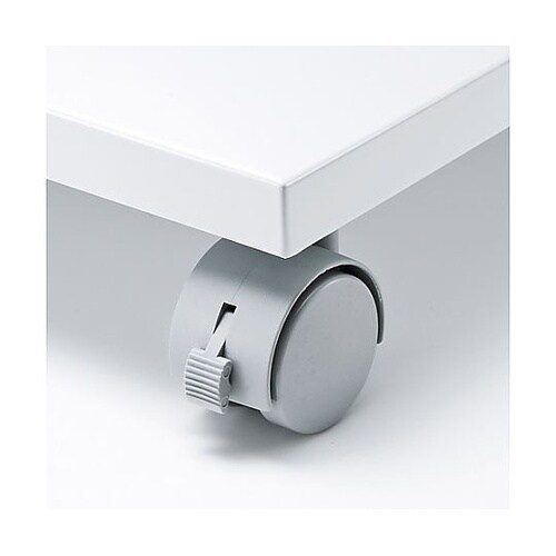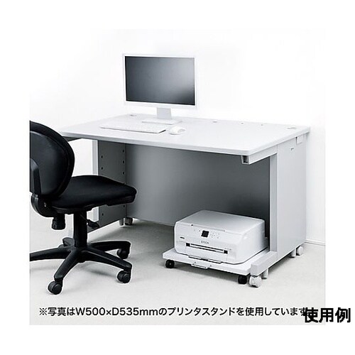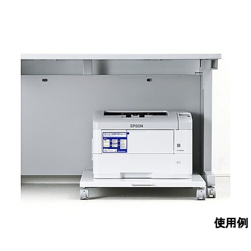 機器を机の下に収納できます。ハンドル付で前後の移動が行いやすいです。 |