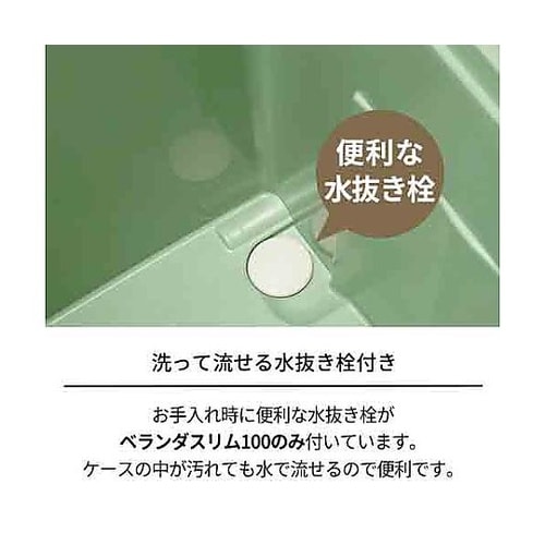 イス・踏み台等としての使用、また積み重ねはできません。狭いベランダでも置けるスリムタイプのストッカーです。お手入れ時に便利な水抜き栓付きです。屋外用の大型収納用品です。 |