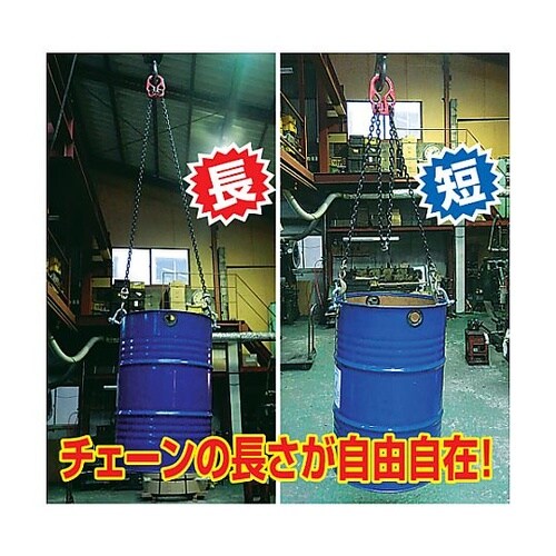 1本吊チェーンの長さが自由自在!長さ調節専用金具を使用しないのでコスト削減!!親環にチェーン装着の溝があり、用途に応じて容易にチェーンの長さ調節ができます。 |