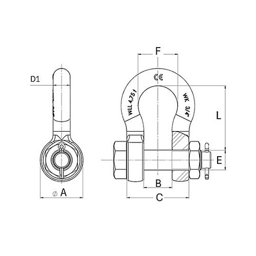 25.0ton 強力型シャックル EA638ND−14 EA638ND−14 1個
