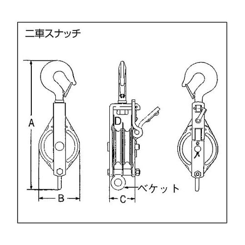 べケット付(本体下部のリング)2車スナッチタイプスイベル式(360°回転)スナッチタイプはワイヤーなどを途中から入れることが可能です。 |