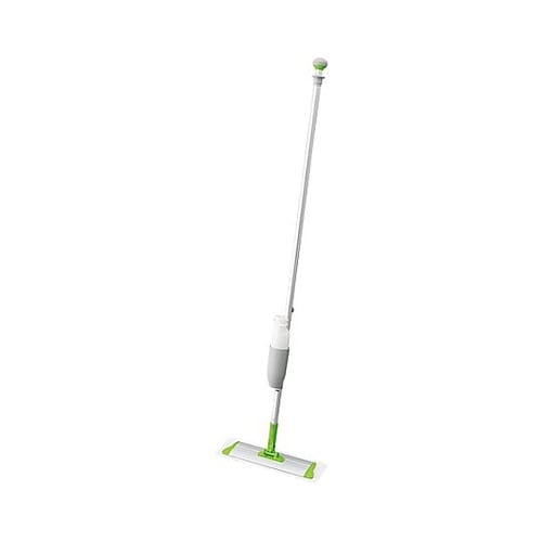 消毒液を投入できるタンク一体型モップです。タンク上部のふたを開けて消毒液を投入します。レバーの上下で流量の調節が可能。ハンドル先端部のレバーを上下にスライドさせることで、消毒液を均一に塗布できます。 |