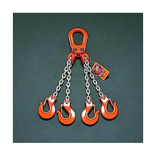 4本吊スチール鋳鉄製マスターリンク付安全で操作が簡単。ねじれによる結合トラブルなどがありません。使用荷重は吊角度0ー60°の時の値です。吊角度を大きくすると使用荷重は低下します。 |