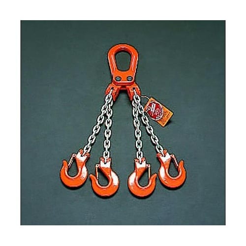 4本吊スチール鋳鉄製マスターリンク付安全で操作が簡単。ねじれによる結合トラブルなどがありません。使用荷重は吊角度0ー60°の時の値です。吊角度を大きくすると使用荷重は低下します。 |