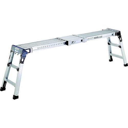 マンションなどの内装工事に最適。作業スペースに合わせて30mmピッチで天板の長さ調整が可能です。下を見なくても台の端を足裏で感知することができる安全機能「足裏感知板」を採用。 |