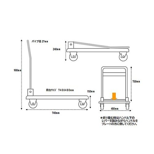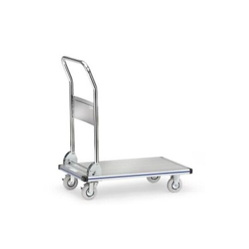 折り畳み可能なハンドル後輪の自在キャスターは、ロック可能です。アルミ製のためスチール製や木製の運搬車に比べて軽量で作業がしやすいです。荷台には滑り止め効果とエッジ保護を施しています。 |