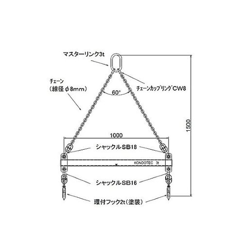 3t/1m 長尺用吊天秤セット EA987FG−22 EA987FG−22 1セット