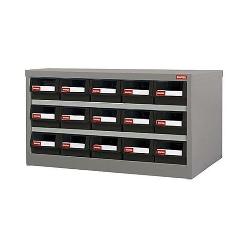 引出し内は仕切られており、整理しやすいようになっています。キャビネットの各棚は、表面が亜鉛メッキされており、酸化防止、摩耗処理が施されています。 |