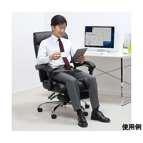 ソフトな手触りで、汚れを拭き取り易いPUレザーを採用しています。リクライニング機能付き。オットマンを引き出して背を倒すと、ほぼフラットにできます。 |