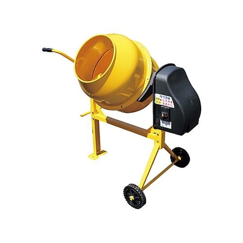 ミキサー排出口がちょうど一輪車を入れるのにちょうど良い高さに設定されています。棒ハンドルでカンタンに回転角度の調整が可能です。ドラムがしっかり回転するリングギア搭載モデルです。 |