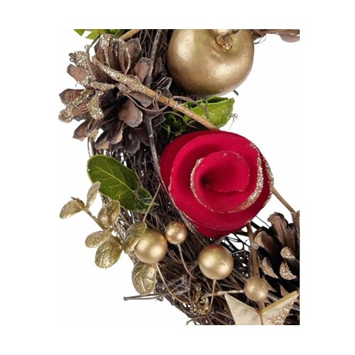 天然素材を使ったナチュラルリース。清潔感のある白、情熱的な赤、大小の大きさを選べます。壁に吊るして簡単に飾ることができます。 |