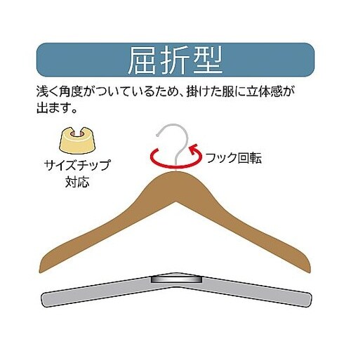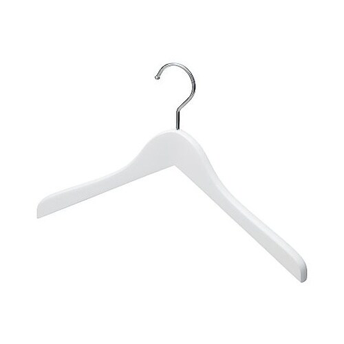浅く角度がついているため、掛けた服に立体感が出ます。白基調のショップに最適。エレガンス、カジュアルともに服の色が引き立つカラーです。フックは回転します。 |
