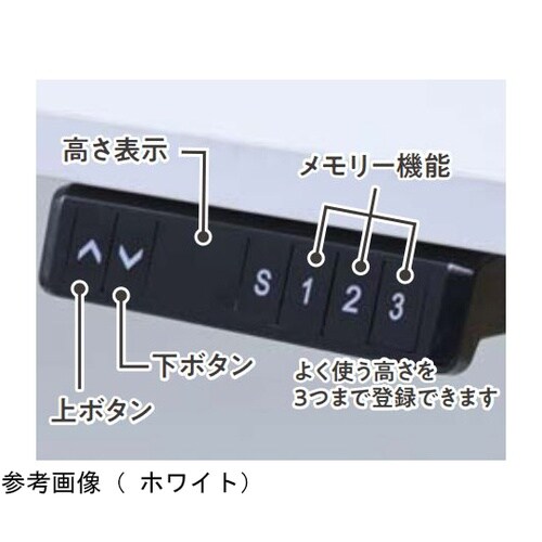ボタンひとつで高さを自由にセットできる昇降デスク。高さを記憶させてボタン1つでお好みの高さに自動調整できるメモリー登録機能付き。最大3パターン高さ設定をメモリー登録できます。 |