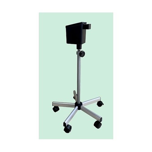 安定感のある、5脚スタンドでキャスターはストッパー付きでしっかりと固定して使用出来ます。大きめのカフボックスによりカフ等の収納が便利に使用可能です。KM−385(0385B001)卓上タイプを取り付け |