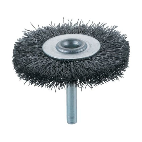 市販の電動ドリルで使用可能です。軸付なので取り付け交換が容易です。金属製品のバリ取り、サビ落とし。電動ドリル、卓上ボール盤。(最高使用回転数以下で使用してください) |
