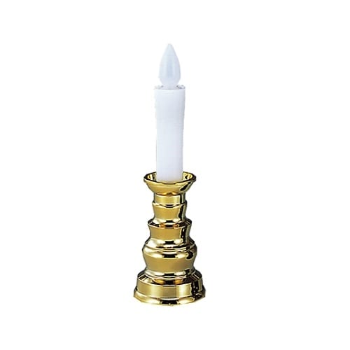 電子の炎で倒れても安心です。炎の部分をポンと押すだけで点灯、消灯ができます。 |