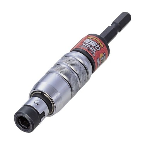 ビットを挿入して首振り・固定、両方使えるビットホルダです。空回り指あて付です。引き寄せ金物、かど金物の取り付けに。 |