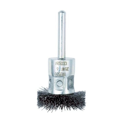 ブラシが側面を向いているため止まり穴にある交差穴だけを重点的に研磨することができます。側面方向の研磨ができます。ブラシがクッションとなり、止まり穴の底部まで入れることができます。交差穴のバリ取りに最適 |