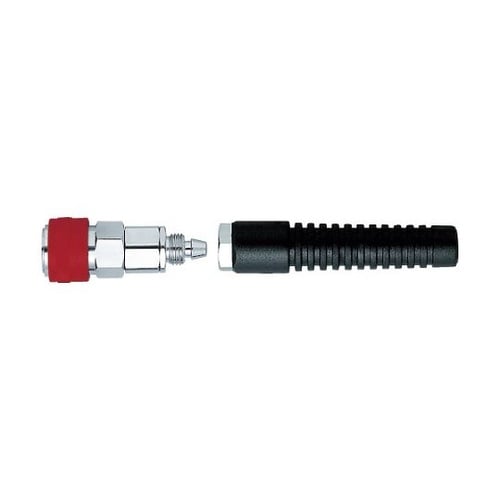 ワンタッチで接続ができ、ロック式で安全です。エアホースの折れを防ぐプロテクター付です。一般カップリングに接続できます。(一部を除く)エアホース交換用カップリング。 |