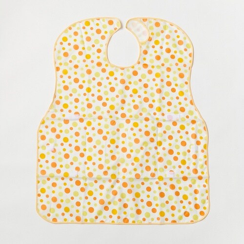 水・油がしみない特殊加工です。食器皿もおけるロングサイズです。折り返すことができ食べこぼしを防ぎます。 |