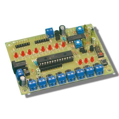 クイズ番組などで見られる「早押しクイズ」を再現できるキット。8人のうち一番早く押されたかを最大3位まで判定。早く押されたスイッチのLEDが点灯し、「ピンポン」音を鳴らします。別売「早押し判定用リレーボ |