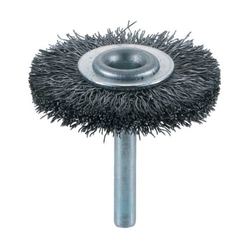 市販の電動ドリルで使用可能です。軸付なので取り付け交換が容易です。金属製品のバリ取り、サビ落とし。電動ドリル、卓上ボール盤。(最高使用回転数以下で使用してください) |