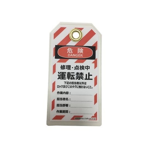 装置の操作禁止を明示し安全性向上φ10mm径で大部分のパドロックがご使用いただけますパドロックセット部分は金属ハメト穴で耐久性を確保油性ペンで書き込めるタイプ |