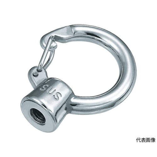 従来のアイナットに開閉できるフックが付いているので、設置後に物を通すこともできます。鳩除け・カラス除けネットなどの端末金具。 |