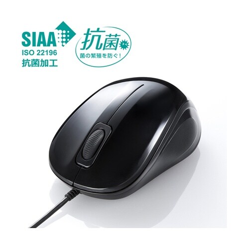 クリック音とホイール回転音が静かな静音有線マウスです。静音仕様なので、公共の場や会議中の操作などでも音を気にせず使用できます。筐体にSIAAの安全基準をクリアした無機抗菌剤が練り込まれており、細菌が増 |