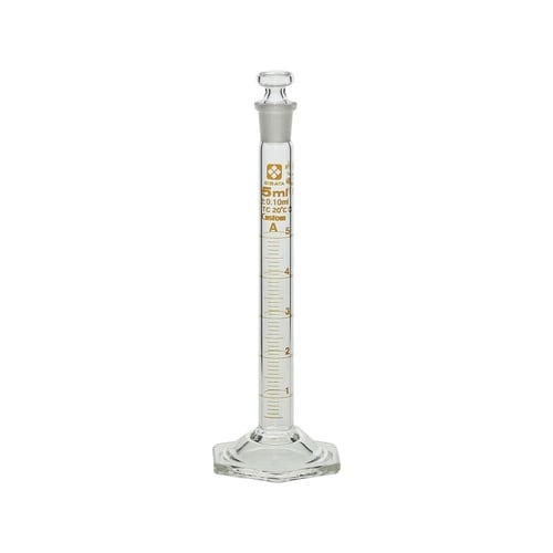 液体の体積を測定するための目盛の付いた細長い円筒容器です。目盛は受入体積(入っている体積)を表し、受用(入用)を意味するTCを表示しています。(TC:To Contain の略)目盛は20℃の水を測定 |