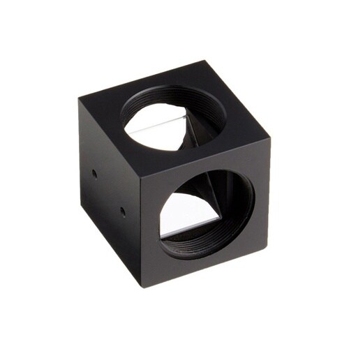 光線・実像を反射・透過させることができるCマウントパーツです。取り付け部がCマウントになっているので、Cマウント中間リング及びCマウント規格のパーツに連結して使用できます。入射光線を透過と反射に分ける |