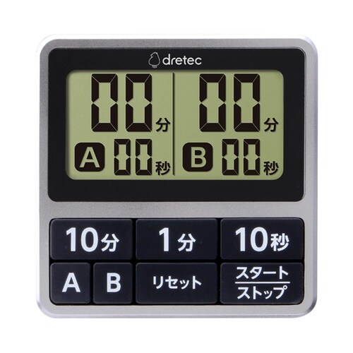 1台で2つの時間をはかれるタイマー濡れた手でも使いやすい防滴タイプ最大199分50秒まで長時間セット大画面LCD(58×30mm) |