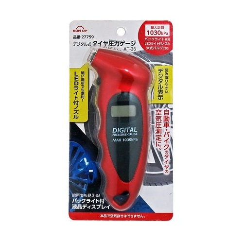 ひと目で読み取りやすいデジタル表示。自動車・バイクのタイヤの空気圧測定に。一般的な乗用車・バイクなどに使用されている米式バルブに使用できます。※自転車(シティサイクル・ロードバイク)に使用されている英 |