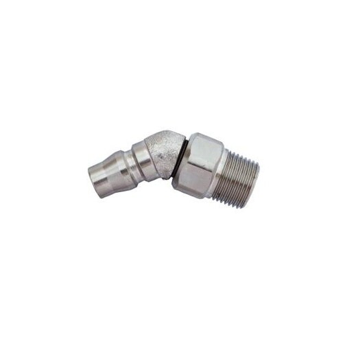 管用めねじに対する配管として。ロータリー式で360°首振り回転し、取り回しが良いです。プラグ傾斜45°で、作業中のホースからの負担を軽減します。ホースのねじれを防止します。