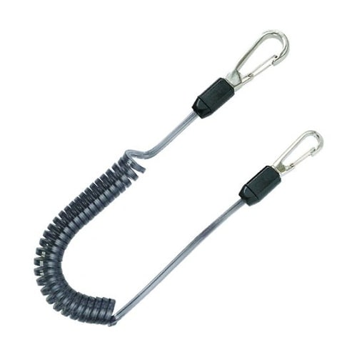 このハイスクウェアシリーズは復元力が高い四角コイルタイプです。コイル巻き部に隙間が無いので擦れることなく2本掛けでもからみにくいです。丸コイルに比べて安全強度は1.6倍です。工具類の落下防止用。 |