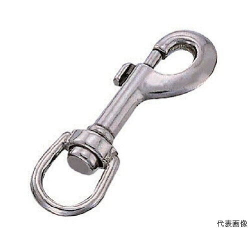 アイの部分が回転するので連結した時にからみません。ワンタッチで開くので手軽にジョイントできます。ペットの係留用チェーンによく使用されています。 |