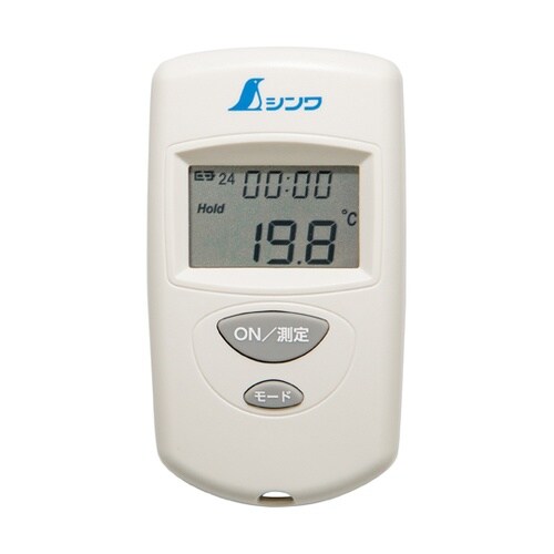 コンパクトサイズで携帯に便利です。時計、市内温度表、ストップウォッチ機能付です。放射率の調整が可能です。 |