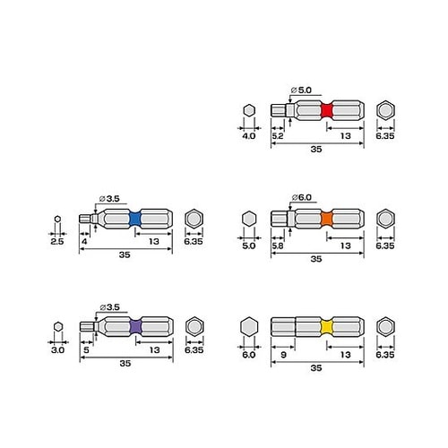 狭い箇所に適しています色で先端サイズの見分けが簡単L型アダプターでの仮締め作業に持ち運びに便利なビット収納ケース付きマグネットなしRoHS2適合品 |