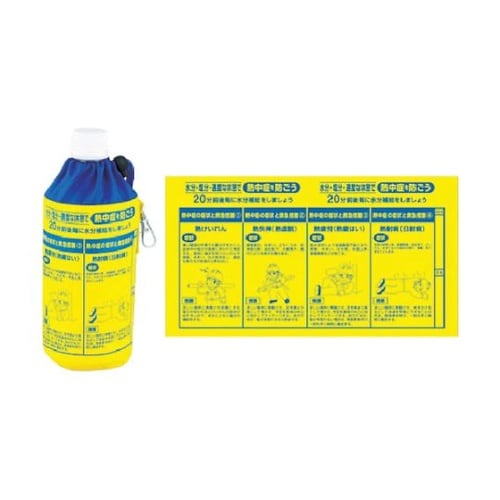 ナスカン付なのでペットボトル飲料の携帯に便利です。わかりやすい熱中症の症状と救急措置のイラストです。内側に保冷生地を使用しました。熱中症対策啓蒙表示入りペットボトルホルダー。 |