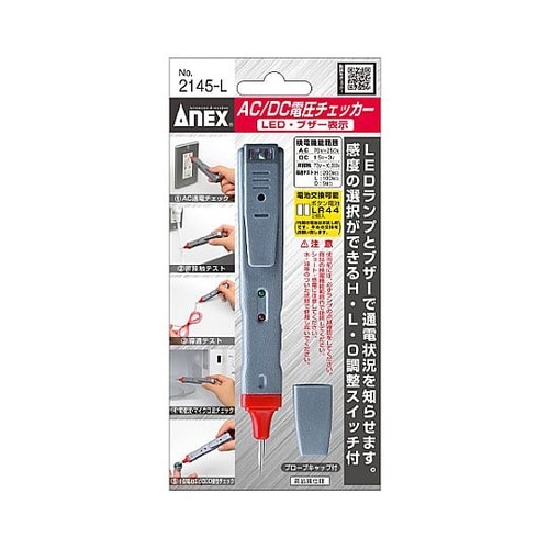 電源(AC)通電しているかどうか簡単にチェックできます。配線の導通チェックが行えます。感度の調整ができ、非接触テストや電磁波チェックが行えます。通電状況をブザーとLEDランプで知らせます。(AC)被覆 |