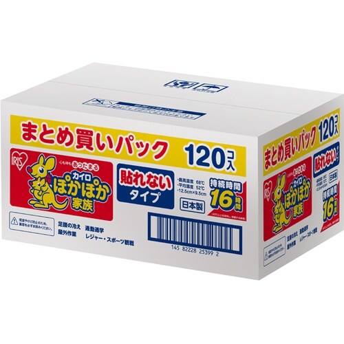 レギュラーサイズの貼れないタイプのカイロです大容量の120枚入りです |