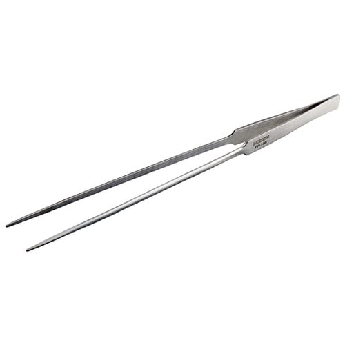 細長い形状のピンセット奥まったところの作業に適しています。全長250mmのため、短いピンセットでは届かない距離にある対象物をつかむことが可能。試験管などの細長い容器に入った試料も正確につかむことができ |