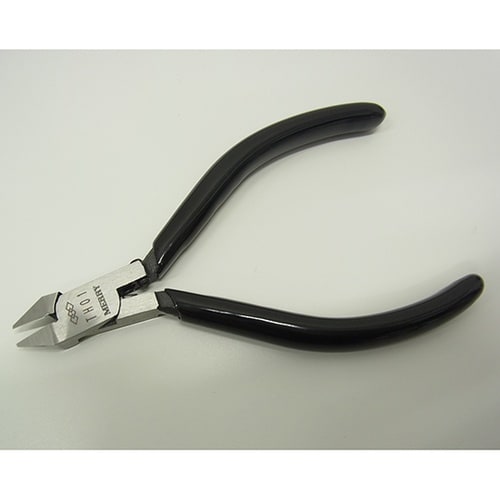 製品に添わせる極薄平刃の片刃仕様。くい違い防止ストッパ付。バネ落ち防止ピン付。 |