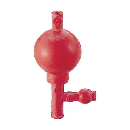3か所にボールバルブを入れてあり、吸引と排出が簡単です。液体を片手で分注できます。ガラス製やプラスチック製など様々な容量のピペットを差し込んで使用します。 |