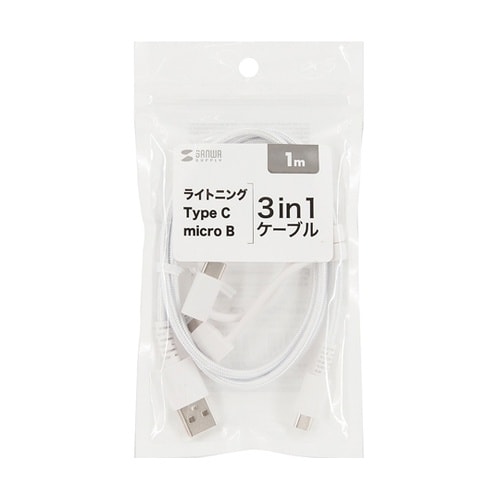 ライトニング・Type−C・microUSB 3in1 ケーブル KB−IPLTCM10