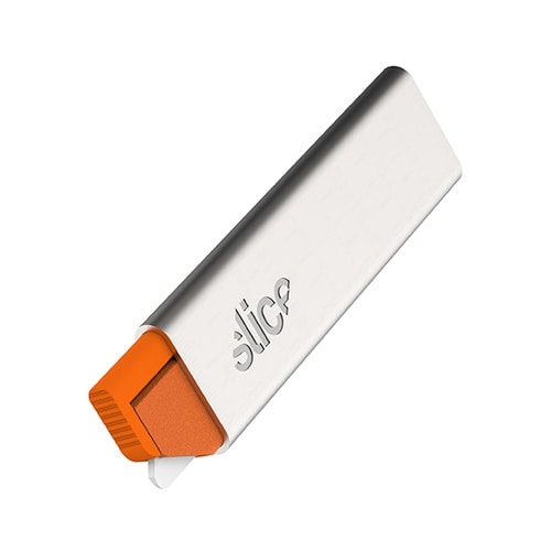 スライスカートンカッター10585は、コンパクト・軽量で携帯できます。主にカートンの開梱に適しています。刃先はラウンド構造で、怪我防止に役立ちます。ケース内部のオレンジケースを押すと刃先が出ます。使用 |