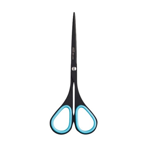 ペンケースや手帳のポケットにも収納可能なスリムタイプです。感触がソフトなエラストマーリングを使用しています。フッ素コート加工で、刃に粘着物が付きにくくなっています。事務用携帯用はさみ