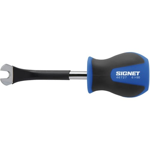 自動車のタイヤハウス等の狭い所でのクリップ外しに最適耐久性のある金属ブレード仕様周りに傷をつけないチューブ付き狭い箇所に便利なスタビータイプハンドルをしっかりと握れるエラストマー樹脂を使用耐薬品、耐油 |