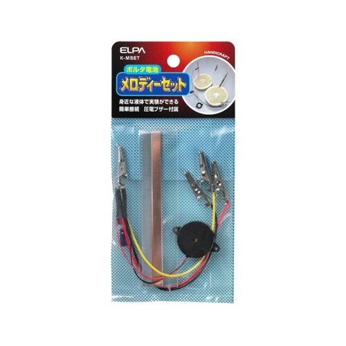 「ボルタ式電池」の実験ができるシンプルなセットです。 どのような液体で音がなるのかを実験して確認するセットです。塩水やレモン水などの液体や、野菜・果物などで実験ができます。電気が流れると”かっこう”の |